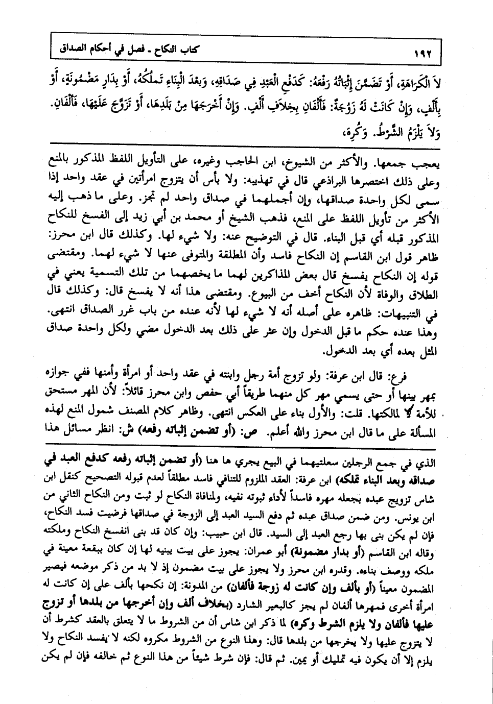فرع: قال ابن عرفة: ولو تزوج أمة رجل وابنته في عقد واحد أو امرأة وأمتها ففي جوازه بمهر بينها أو حتى يسمي مهر كل منهما طريقا أبي حفص وابن محرز قائلا: لأن المهر مستحق للأمة لا لمالكتها قلت: والأول: بناء على العكس انتهى. وظاهر كلام المصنف شمول المنع لهذه المسألة: على ما قال ابن محرز والله أعلم. ص: "أو تضمن إثباته رفعه" ش: انظر مسائل هذا