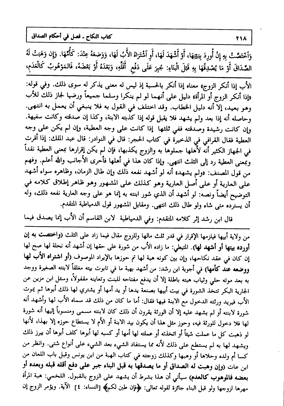 قال ابن رشد: إثر كلامه المتقدم وفي الدمياطية لابن القاسم أن الأب إنما يصدق فيما