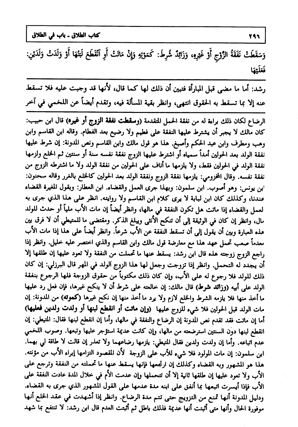 رشد: أما ما مضى قبل المبارأة فتبين أن ذلك لها كما قال لأنها قد وجبت عليه فلا تسقط عنه إلا بما تسقط به الحقوق انتهى. وانظر بقية المسألة فيه وتقدم أيضا عن اللخمي في آخر