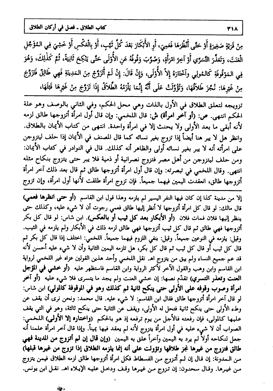 من قرية صغيرة أو حتى أنظرها فعمي، أو الأبكار بعد كل ثيب، أو بالعكس أو خشي في المؤجل العنت، وتعذر التسري أو آخر امرأة، وصوب وقوفه عن الأولى حتى ينكح ثانية، ثم كذلك، وهو في الموقوفة كالمولي وأختاره إلا الأولى، وإن قال إن لم أتزوج من المدينة فهي طالق فتزوج من غيرها نجز طلاقها، وتؤولت على أنه إنما يلزمه الطلاق إذا تزوج من غيرها قبلها،