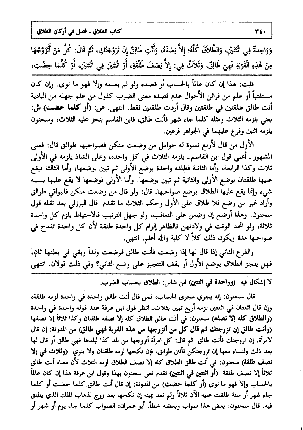 وواحدة في اثنتين، والطلاق كله، إلا نصفه، وأنت طالق إن تزوجتك، ثم قال: كل من أتزوجها من هذه القرية فهي طالق، وثلاث في: إلا نصف طلقة، أو اثنتين في اثنتين، أو كلما حضت،