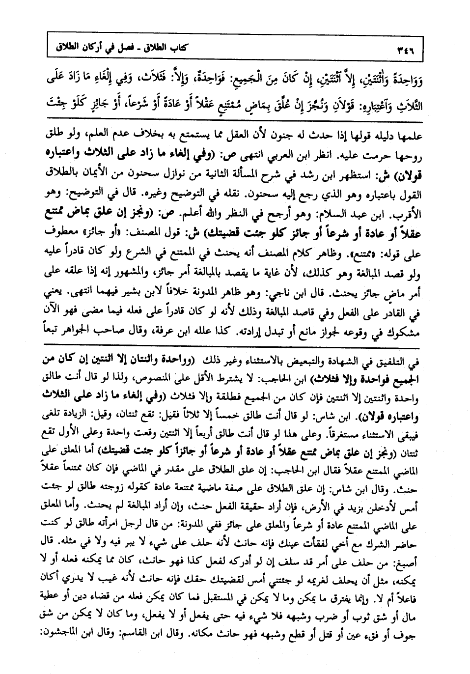 علمها دليله قولها إذا حدث له جنون لأن العقل مما يستمتع به بخلاف عدم العلم ولو طلق روحها حرمت عليه انظر ابن العربي انتهى. ص: "وفي إلغاء ما زاد على الثلاث واعتباره قولان" ش: استظهر ابن رشد في شرح المسألة الثانية من نوازل سحنون من الأيمان بالطلاق القول باعتباره وهو الذي رجع إليه سحنون نقله في التوضيح وغيره قال في التوضيح: وهو الأقرب ابن عبد السلام: وهو أرجح في النظر والله أعلم. ص: "ونجز إن علق بماض ممتنع عقلا أو عادة أو شرعا أو جائز كلو جئت قضيتك" ش: قول المصنف: "أو جائز" معطوف على قوله: "ممتنع" وظاهر كلام المصنف أنه يحنث في الممتنع في الشرع ولو كان قادرا عليه ولو قصد المبالغة وهو كذلك لأن غاية ما يقصد بالمبالغة أمر جائز والمشهور إنه إذا علقه على أمر ماض جائز يحنث قال ابن ناجي: وهو ظاهر المدونة خلافا لابن بشير فيهما انتهى. يعني في القادر على الفعل وفي قاصد المبالغة وذلك لأنه لو كان قادرا على فعله فيما مضى فهو الآن مشكوك في وقوعه لجواز مانع أو تبدل إرادته كذا علله ابن عرفة وقال صاحب الجواهر تبعا