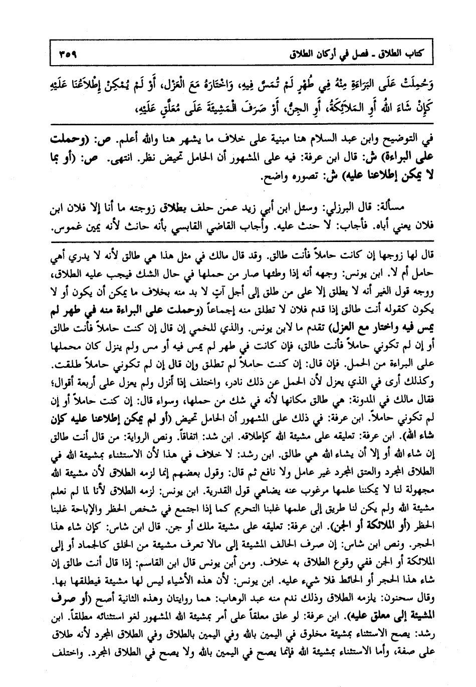 في التوضيح وابن عبد السلام هنا مبنية على خلاف ما يشهر هنا والله أعلم. ص: "وحملت على البراءة" ش: قال ابن عرفة: فيه على المشهور أن الحامل تحيض نظر انتهى. ص: "أو بما لا يمكن إطلاعنا عليه" ش: تصوره واضح.