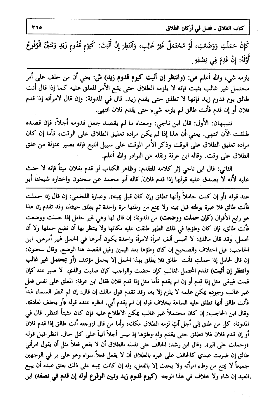 يلزمه شيء والله أعلم. ص: "وانتظر إن أثبت كيوم قدوم زيد" ش: يعني أن من حلف على أمر محتمل غير غالب يثبت فإنه لا يلزمه الطلاق حتى يقع الأمر المعلق عليه كما إذا قال أنت طالق يوم قدوم زيد فإنها لا تطلق حتى يقدم زيد قال في المدونة: وإن قال لامرأته إذا قدم فلان أو إن قدم فأنت طالق لم يلزمه شيء حتى يقدم فلان انتهى.