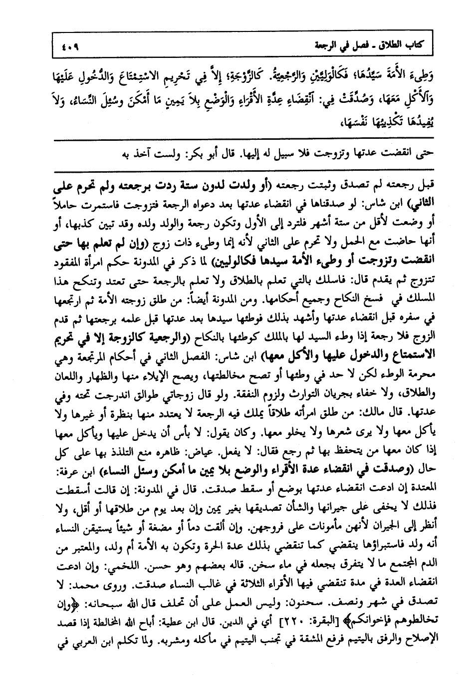 وطئ الأمة سيدها فكالوليين والرجعية كالزوجة إلا في تحريم الاستمتاع والدخول عليها والأكل معها، وصدقت في انقضاء عدة الأقراء والوضع بلا يمين ما أمكن، وسئل النساء ولا يفيدها تكذيبها نفسها،