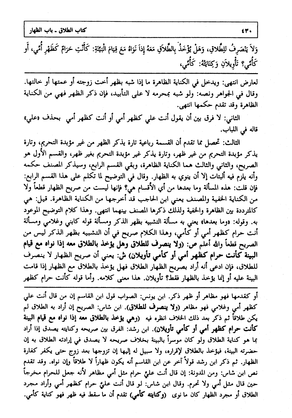 حرام كظهر أمي أو كأمي؟ تأويلان، وكنايته كأمي،