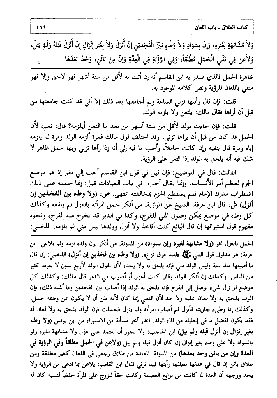 ظاهرة الحمل فالذي صدر به ابن القاسم أنه إن أتت به لأقل من ستة أشهر فهو لاحق وإلا فهو منفي باللعان للرؤية ونص كلامه الموعود به.