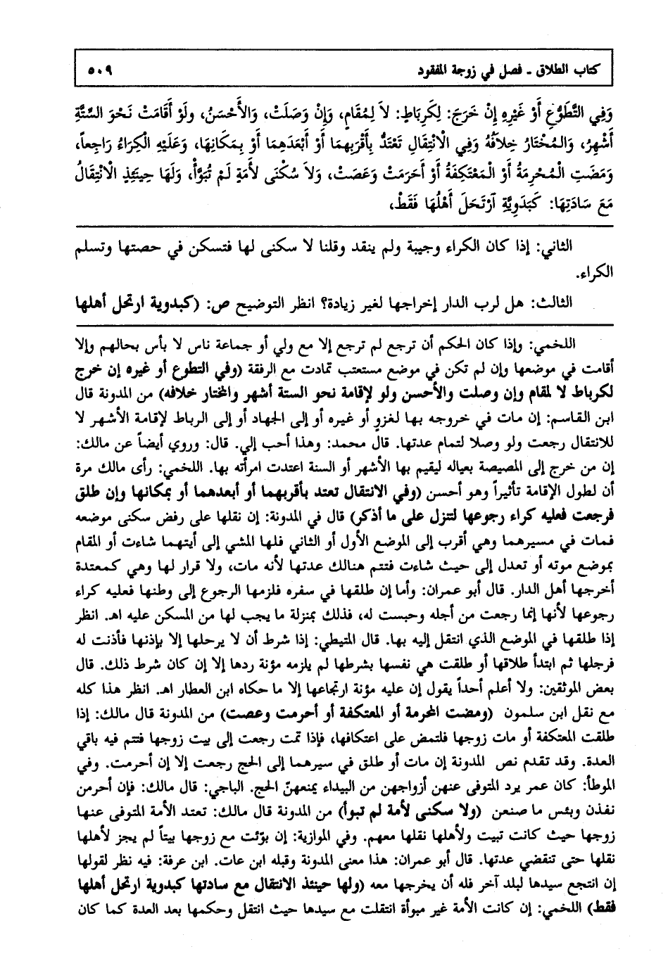 الثالث: هل لرب الدار إخراجها لغير زيادة؟ انظر التوضيح ص: "كبدوية ارتحل أهلها