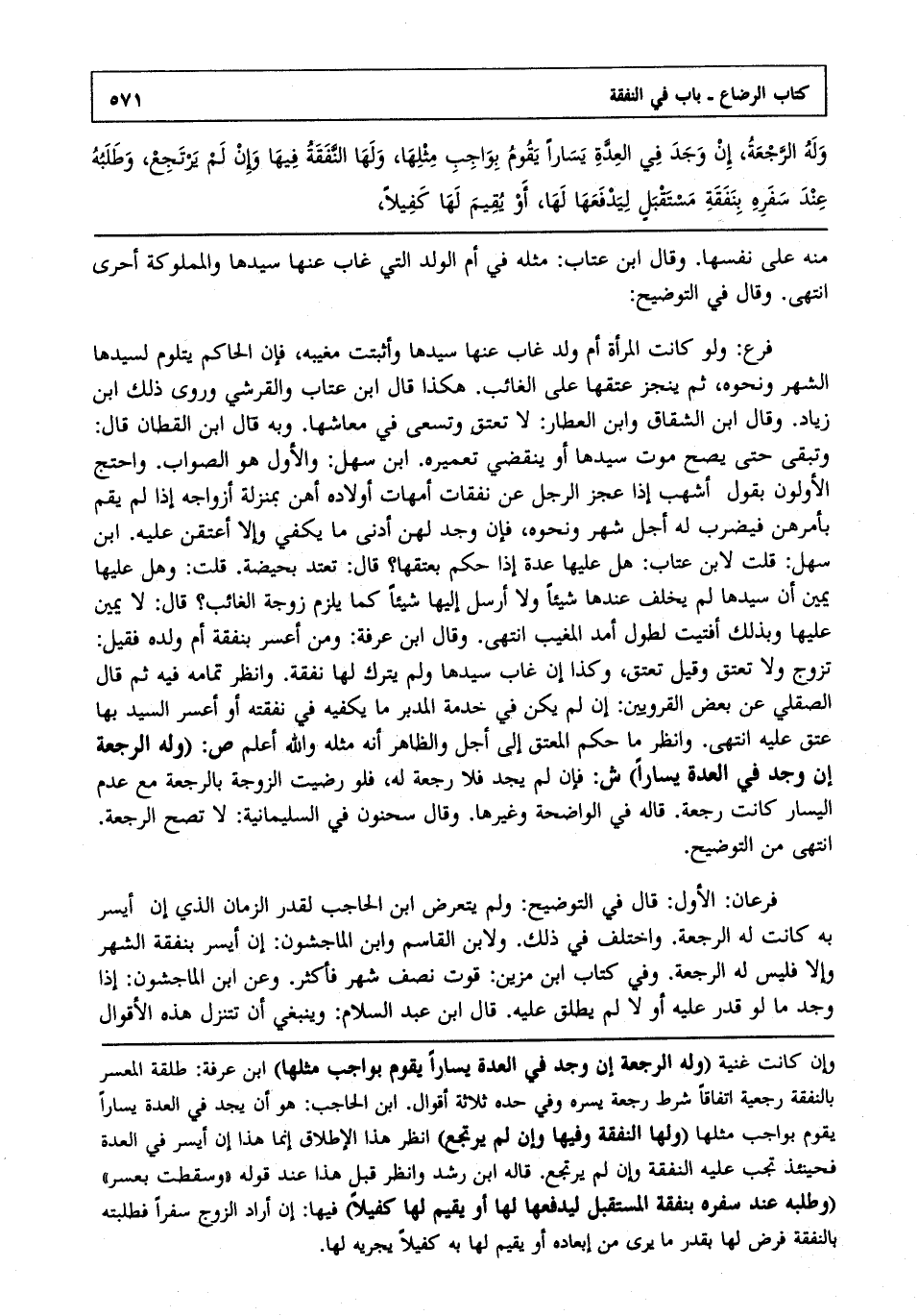 فرعان: الأول: قال في التوضيح: ولم يتعرض ابن الحاجب لقدر الزمان الذي إن أيسر به كانت له الرجعة واختلف في ذلك ولابن القاسم وابن الماجشون: إن أيسر بنفقة الشهر وإلا فليس له الرجعة وفي كتاب ابن مزين: قوت نصف شهر فأكثر وعن ابن الماجشون: إذا وجد ما لو قدر عليه أو لا لم يطلق عليه قال ابن عبد السلام: وينبغي أن تتنزل هذه الأقوال