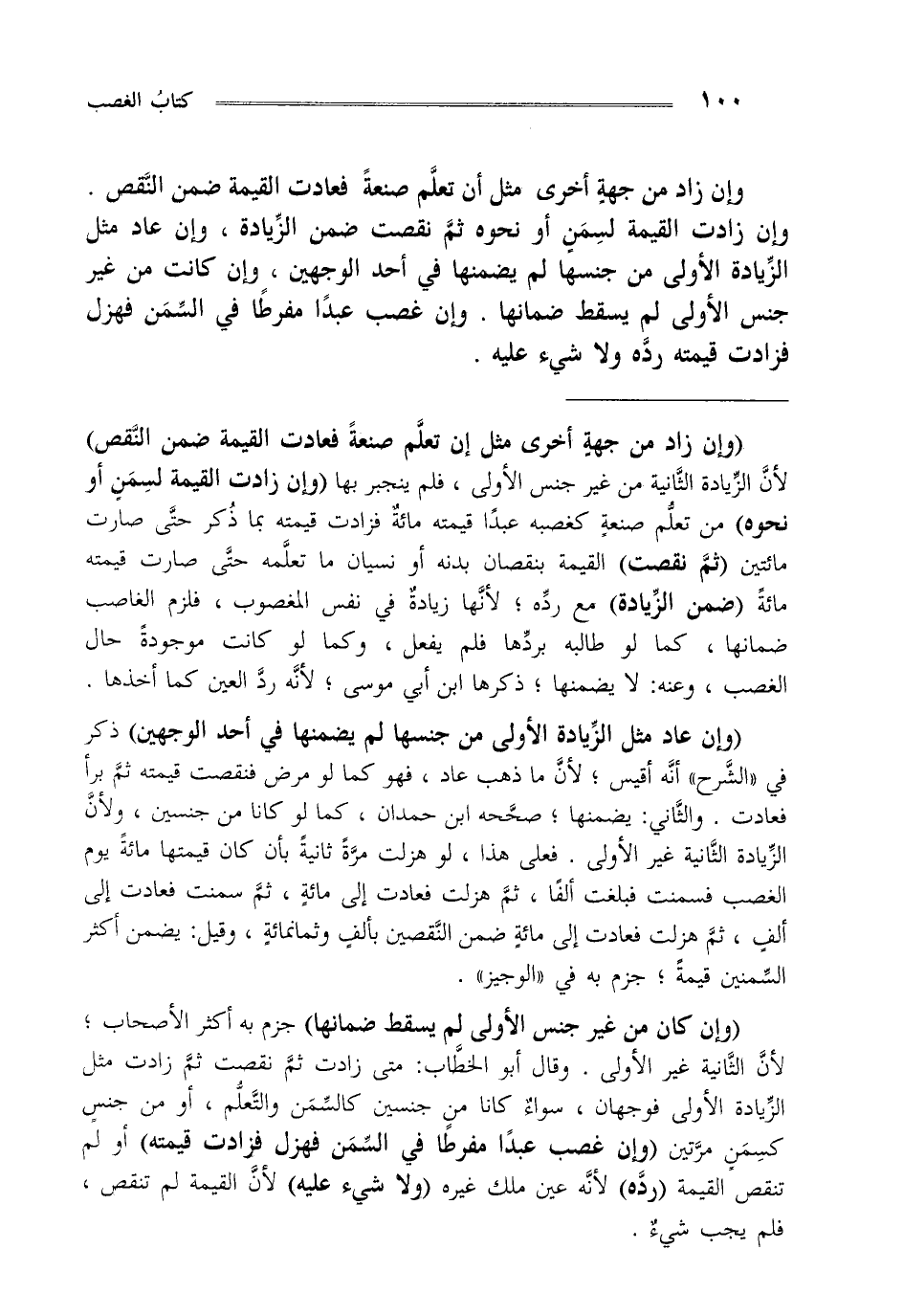 "وإن عاد مثل الزيادة الأولى من جنسها لم يضمنها في أحد الوجهين" ذكر في الشرح أنه أقيس لأن ما ذهب عاد فهو كما لو مرض فنقصت قيمته ثم برأ فعادت والثاني يضمنها صححه ابن حمدان كما لو كانا من جنسين ولأن الزيادة الثانية غير الأولى فعلى هذا لو هزلت مرة ثانية بأن كان قيمتها مائة يوم الغصب فسمنت فبلغت ألفا ثم هزلت فعادت إلى مائة ثم سمنت فعادت إلى ألف ثم هزلت فعادت إلى مائة ضمن النقصين بألف وثمانمائة وقيل يضمن أكثر السمنين قيمة جزم به في الوجيز.