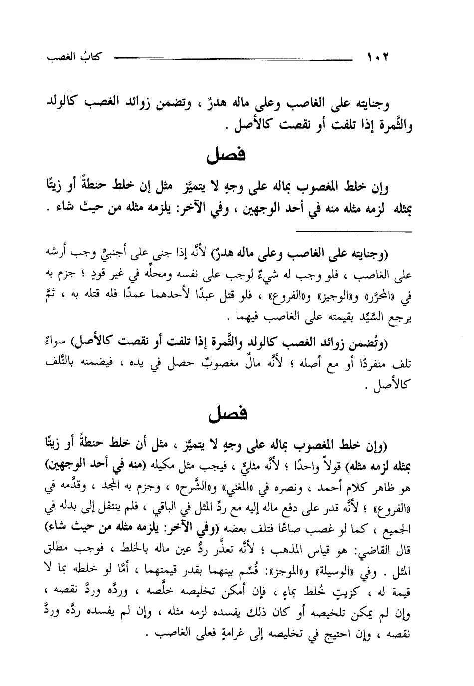 "وإن خلط المغصوب بماله على وجه لا يتميز مثل أن خلط حنطة أو زيتا بمثله لزمه مثله قولا واحدا" لأنه مثلي فيجب مثل مكيله "منه في أحد الوجهين" هو ظاهر كلام أحمد ونصره في المغني والشرح و جزم به المجد وقدمه في الفروع لأنه قدر على دفع ماله إليه مع رد المثل في الباقي فلم بنتقل إلى بدله في الجميع كما لو غصب صاعا فتلف بعضه "وفي الآخر يلزمه مثله من حيث شاء" قال القاضي هو قياس المذهب لأنه تعذر رد عين ماله بالخلط فوجب مطلق المثل وفي الوسيلة والموجز قسم بينهما بقدر قيمتهما أما لو خلطه بما لا قيمة له كزيت خلط بماء فإن أمكن تخليصه خلصه ورده ورد نقصه وإن لم يمكن تخليصه أو كان ذلك يفسده لزمه مثله وإن لم يفسده رده ورد نقصه وإن احتيج في تخليصه إلى غرامة فعلى الغاصب