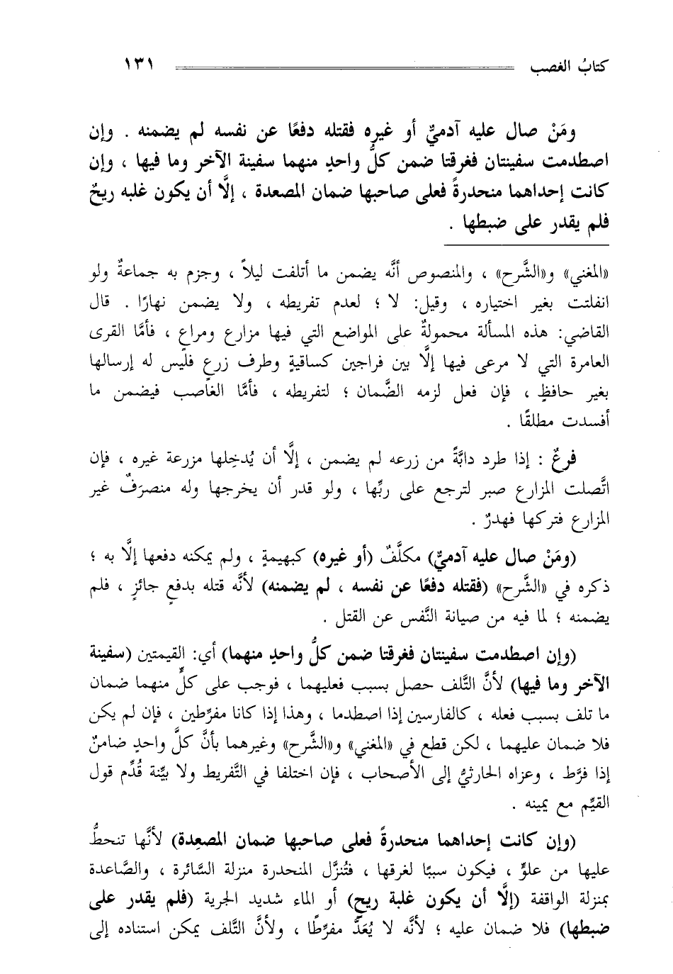 ومن صال عليه آدمي أو غيره فقتله دفعا عن نفسه لم يضمنه وإن اصطدمت سفينتان فغرقنا ضمن كل واحد منهما سفينة الآخر وما فيها وإن كانت إحداهما منحدرة فعلى صاحبها ضمان المصعدة إلا أن يكون غلبه ريح فلم يقدر على ضبطها