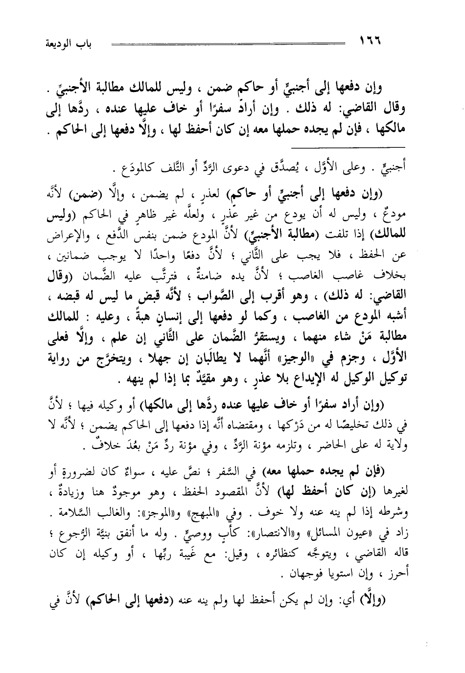 وإن دفعها إلى أجنبي أو حاكم ضمن وليس للمالك مطالبة الأجنبي وقال القاضي له ذلك وإن أراد سفرا أو خاف عليها عنده ردها إلى مالكها فإن لم يجد حملها معه إن كان أحفظ لها وإلا دفعها إلى الحاكم