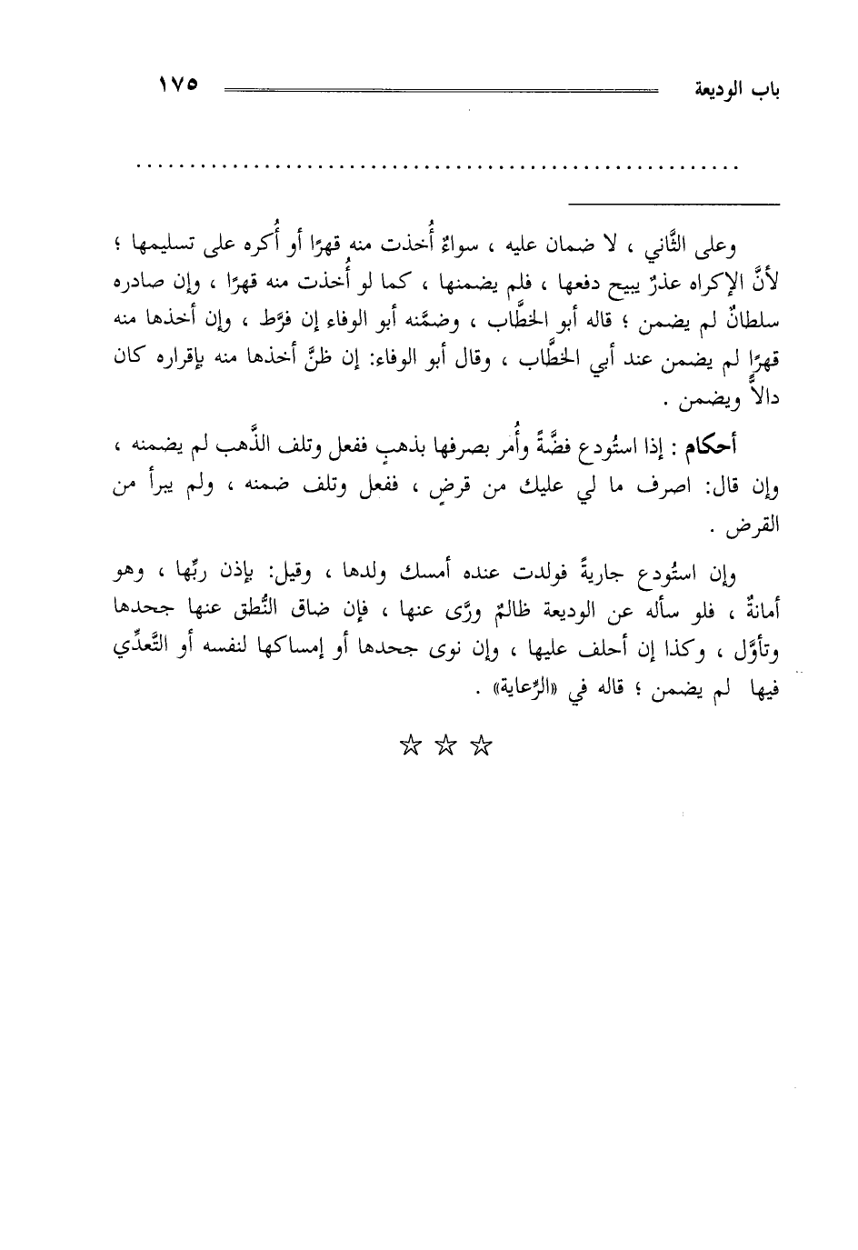 أحكام: إذا استودع فضة وأمر بصرفها بذهب ففعل وتلف الذهب لم يضمنه وإن قال اصرف مالي عليك من قرض ففعل وتلف ضمنه ولم يبرأ من القرض