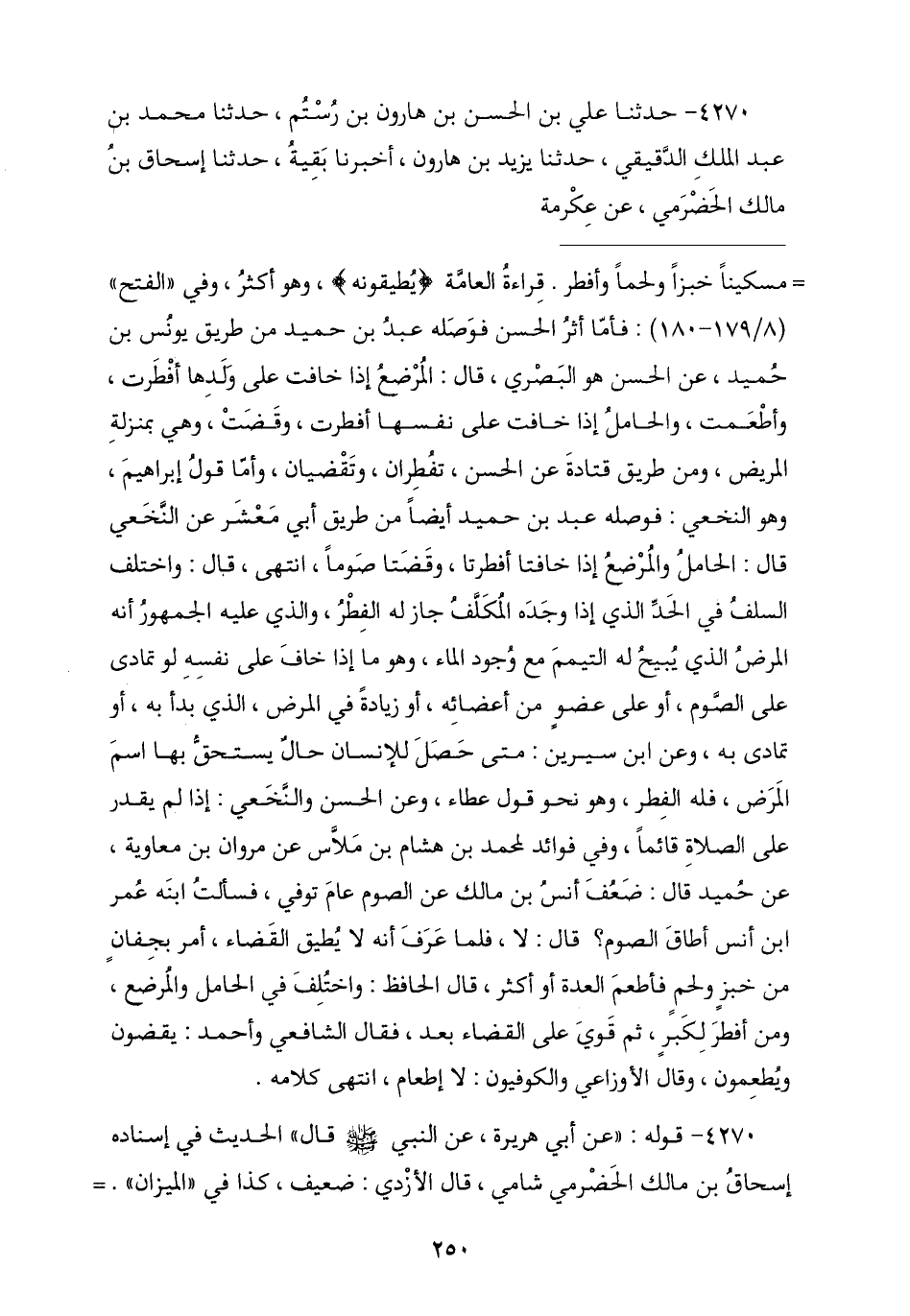 4270 - نا عَلِيُّ بْنُ الْحَسَنِ بْنِ هَارُونَ بْنِ رُسْتُمَ , نا مُحَمَّدُ بْنُ عَبْدِ الْمَلِكِ الدَّقِيقِيُّ , نا يَزِيدُ بْنُ هَارُونَ , أنا بَقِيَّةُ , نا إِسْحَاقُ بْنُ مَالِكٍ الْحَضْرَمِيُّ , عَنْ عِكْرِمَةَ , -[251]- عَنْ أَبِي هُرَيْرَةَ , عَنِ النَّبِيِّ صَلَّى اللهُ عَلَيْهِ وَسَلَّمَ , قَالَ: «مَنْ حَلَفَ عَلَى أَحَدٍ بِيَمِينٍ وَهُوَ يَرَى أَنَّهُ §سَيَبِرُّهُ فَلَمْ يَفْعَلْ فَإِنَّمَا إِثْمُهُ عَلَى الَّذِي لَمْ يَبِرَّهُ»