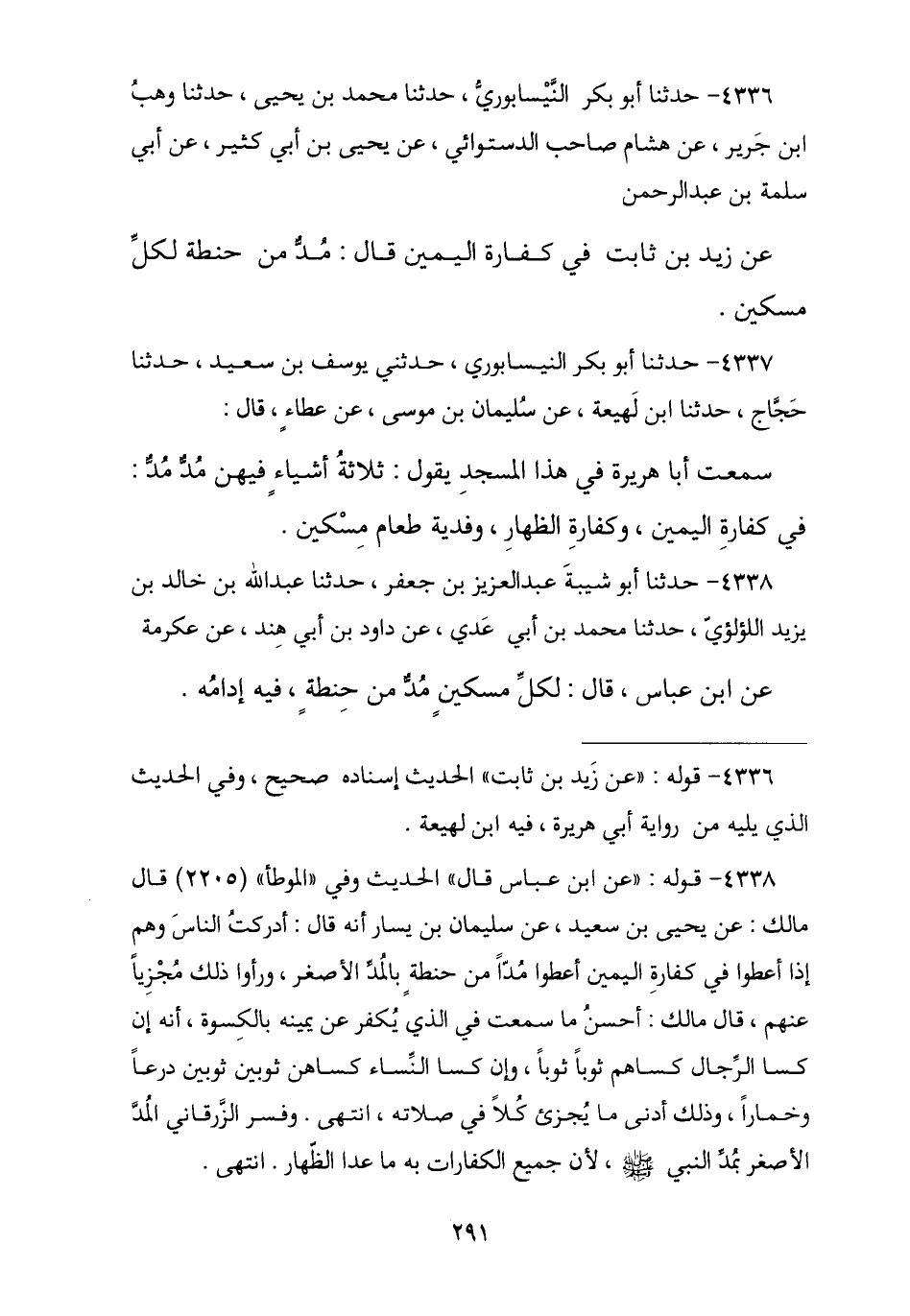 4336 - نا أَبُو بَكْرٍ النَّيْسَابُورِيُّ , نا مُحَمَّدُ بْنُ يَحْيَى , نا وَهْبُ بْنُ جَرِيرٍ , نا هِشَامٌ صَاحِبُ الدَّسْتُوَائِيِّ , عَنْ يَحْيَى بْنِ أَبِي كَثِيرٍ , عَنْ أَبِي سَلَمَةَ بْنِ عَبْدِ الرَّحْمَنِ , عَنْ زَيْدِ بْنِ ثَابِتٍ , فِي كَفَّارَةِ الْيَمِينِ , قَالَ: § «مُدٌّ مِنْ حِنْطَةٍ لِكُلِّ مِسْكِينٍ»
