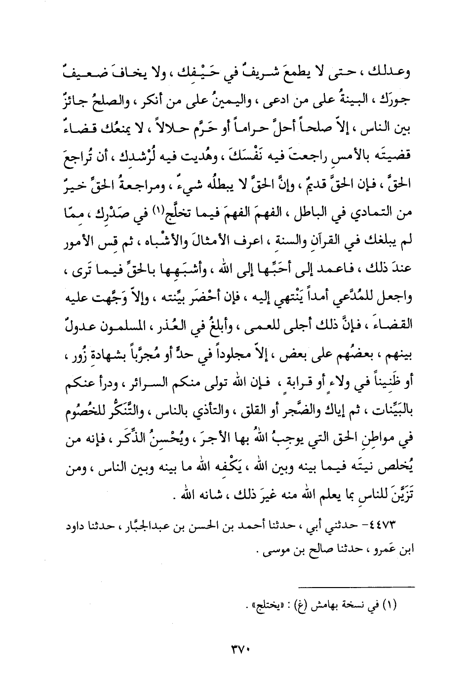 4473 - حَدَّثَنِي أَبِي , نا أَحْمَدُ بْنُ الْحُنَيْنِ بْنِ عَبْدِ الْجَبَّارِ , نا دَاوُدُ بْنُ عَمْرٍو , نا صَالِحُ بْنُ مُوسَى -[371]- ح وثنا عُثْمَانُ بْنُ أَحْمَدَ الدَّقَّاقُ , نا مُحَمَّدُ بْنُ الْحُسَيْنِ بْنِ حَفْصٍ الْخَثْعَمِيُّ , نا مُحَمَّدُ بْنُ عُبَيْدٍ الْمُحَارِبِيُّ , نا صَالِحُ بْنُ مُوسَى , عَنْ عَبْدِ الْعَزِيزِ بْنِ رُفَيْعٍ , عَنْ أَبِي صَالِحٍ , عَنْ أَبِي هُرَيْرَةَ , عَنِ النَّبِيِّ صَلَّى اللهُ عَلَيْهِ وَسَلَّمَ , قَالَ: § «سَيَأْتِيكُمْ عَنِّي أَحَادِيثُ مُخْتَلِفَةٌ , فَمَا جَاءَكُمْ مُوَافِقًا لِكِتَابِ اللَّهِ وَلِسُنَّتِي فَهُوَ مِنِّي , وَمَا جَاءَكُمْ مُخَالِفًا لِكِتَابِ اللَّهِ وَلِسُنَّتِي فَلَيْسَ مِنِّي». صَالِحُ بْنُ مُوسَى ضَعِيفٌ لَا يُحْتَجُّ بِحَدِيثِهِ