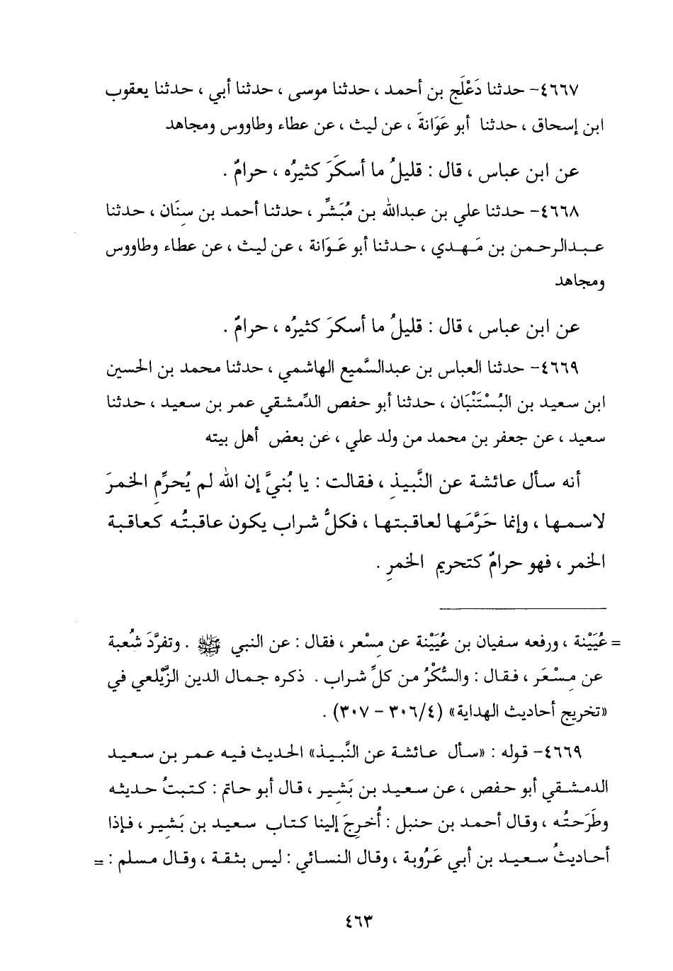 4668 - حَدَّثَنَا عَلِيُّ بْنُ عَبْدِ اللَّهِ بْنِ مُبَشِّرٍ , نا أَحْمَدُ بْنُ سِنَانٍ , نا عَبْدُ الرَّحْمَنِ بْنُ مَهْدِيٍّ , عَنْ أَبِي عَوَانَةَ , عَنْ لَيْثٍ , عَنْ عَطَاءٍ , وَطَاوُسٍ , وَمُجَاهِدٍ , عَنِ ابْنِ عَبَّاسٍ , قَالَ: § «قَلِيلُ مَا أَسْكَرَ كَثِيرُهُ حَرَامٌ»
