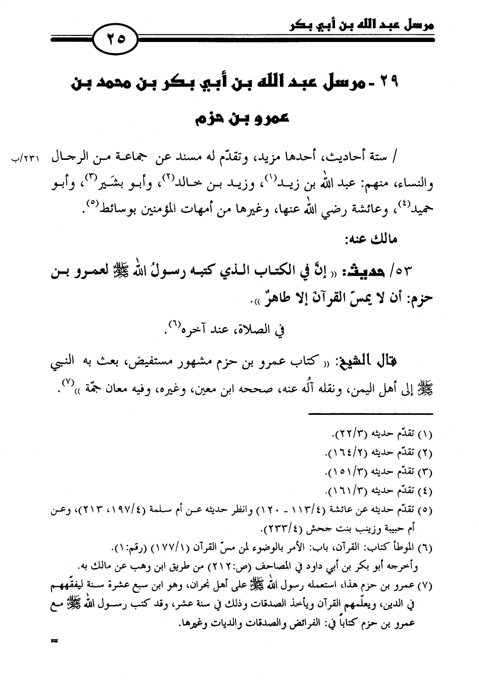 ٢٩ - مرسل عبد الله بن أبي بكر بن محمد بن عمرو بن حزم