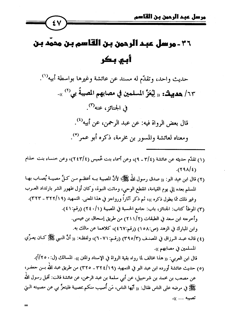 ٣٦ - مرسل عبد الرحمن بن القاسم بن محمّد بن أبي بكر