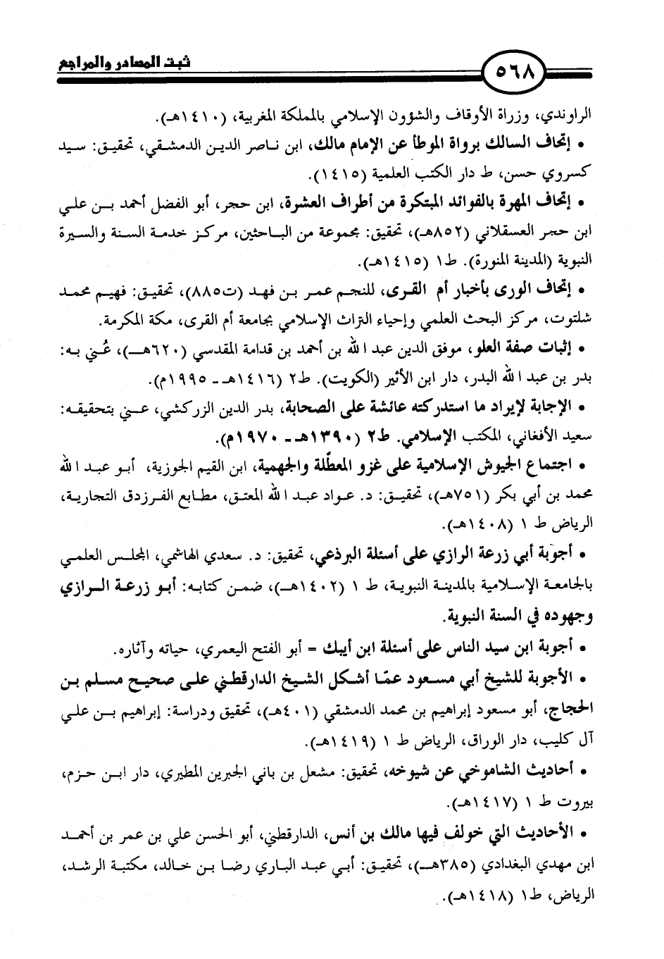 * إتحاف المهرة بالفوائد المبتكرة من أطراف العشرة، ابن حجر، أبو الفضل أحمد بن عدي بن حجر العسقلاني (٨٥٢ هـ)، تحقيق: مجموعة من الباحثين، مركز خدمة السنة والسيرة النبوية (المدينة المنورة). ط ١ (١٤١٥ هـ).