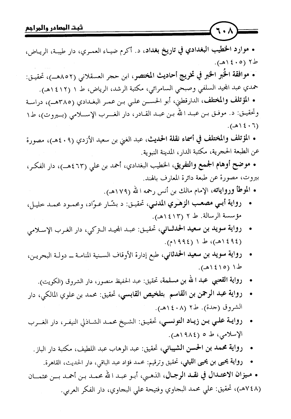 * المؤتلف والمختلف، الدارقطني، أبو الحسن علي بن عمر البغدادي (٣٨٥ هـ)، دراسة وتحقيق: د. موفق بن عبد الله بن عبد القادر، دار الغرب الإسلامي (بيروت)، ط ١ (١٤٠٦ هـ).