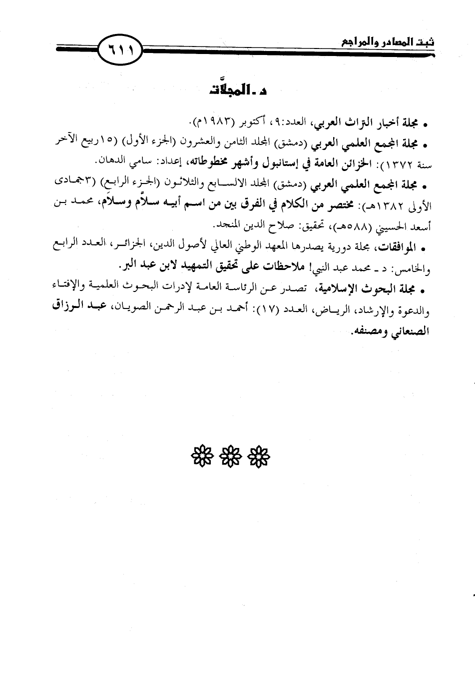 * مجلة المجمع العلمي العربي (دمشق) المجلد السابع والثلاثون (الجزء الرابع) (٣ جمادى الأولى ١٣٨٢ هـ): مختصر من الكلام في الفرق بين من اسم أبيه سلَّام وسلاَم، محمد بن أسعد الحسيني (٥٨٨ هـ)، تحقيق: صلاح الدين المنجد.