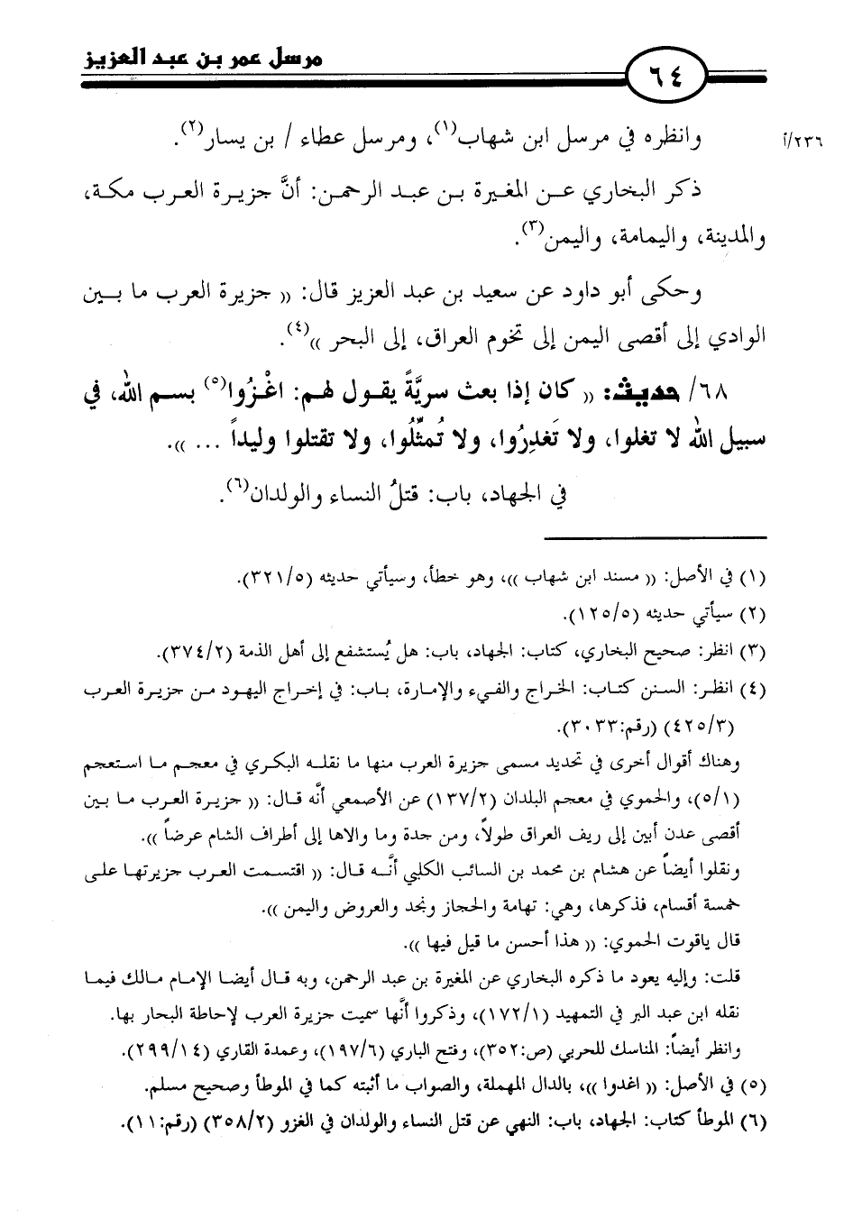 (٤) انظر: السنن كتاب: الخراج والفئ والإمارة، باب: في إخراج اليهود من حزيرة العرب (٣/ ٤٢٥) (رقم: ٣٠٣٣).