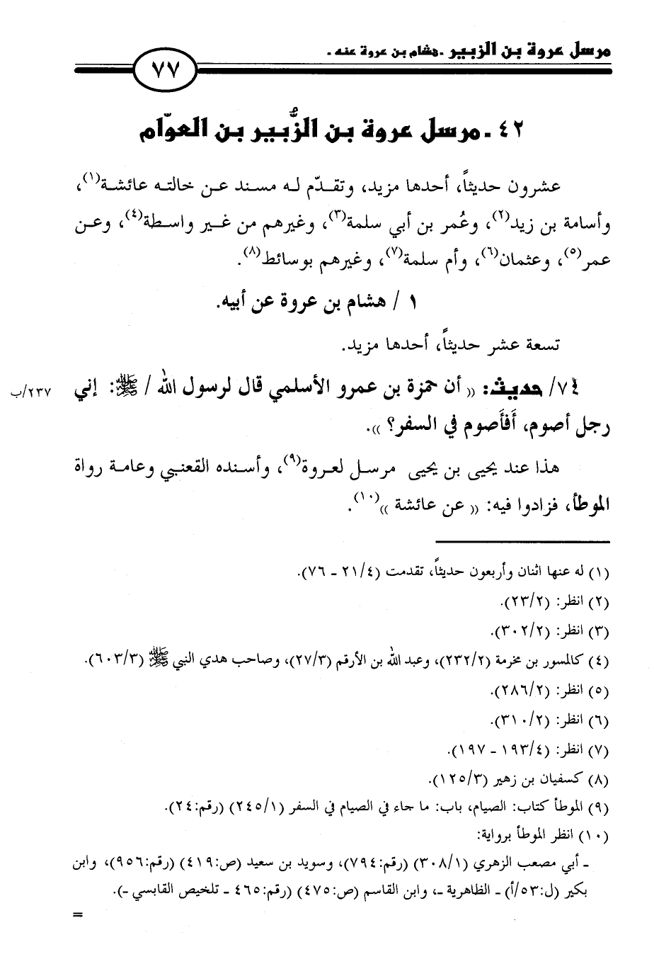 ٤٢ - مرسل عروة بن الزبير بن العوّام