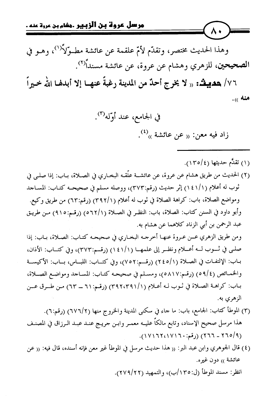 ٧٦ / حديث: "لا يخرج أحدٌ من المدينة رغبةً عنها إلا أبدلها الله خيرًا منه".