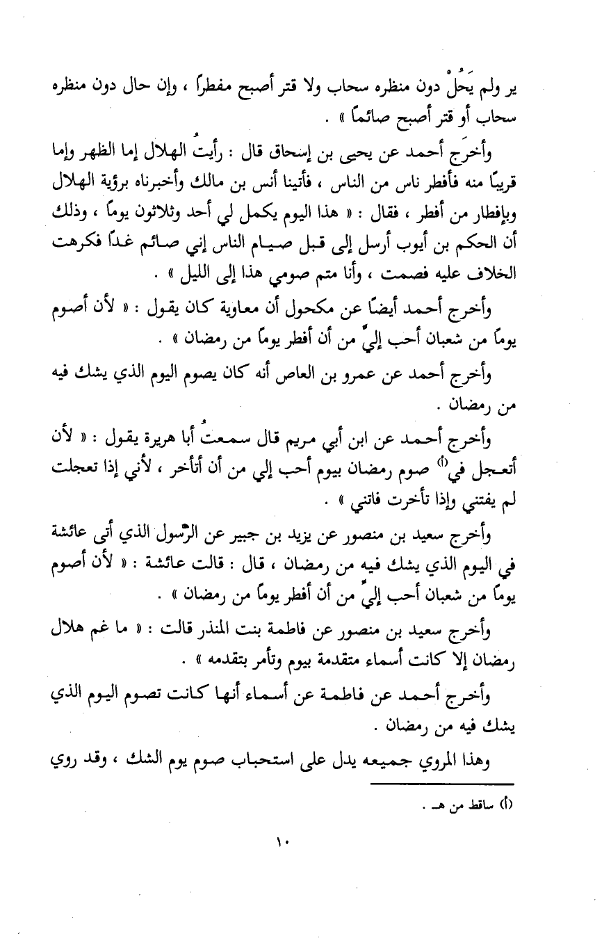 وأخرج أحمد عن ابن أبي مريم قال سمعتُ أبا هريرة يقول: "لأن أتعجل في (أ) صوم رمضان بيوم أحب إلى من أن أتأخر، لأني إذا تعجلت لم يفتني وإذا تأخرت فاتني".