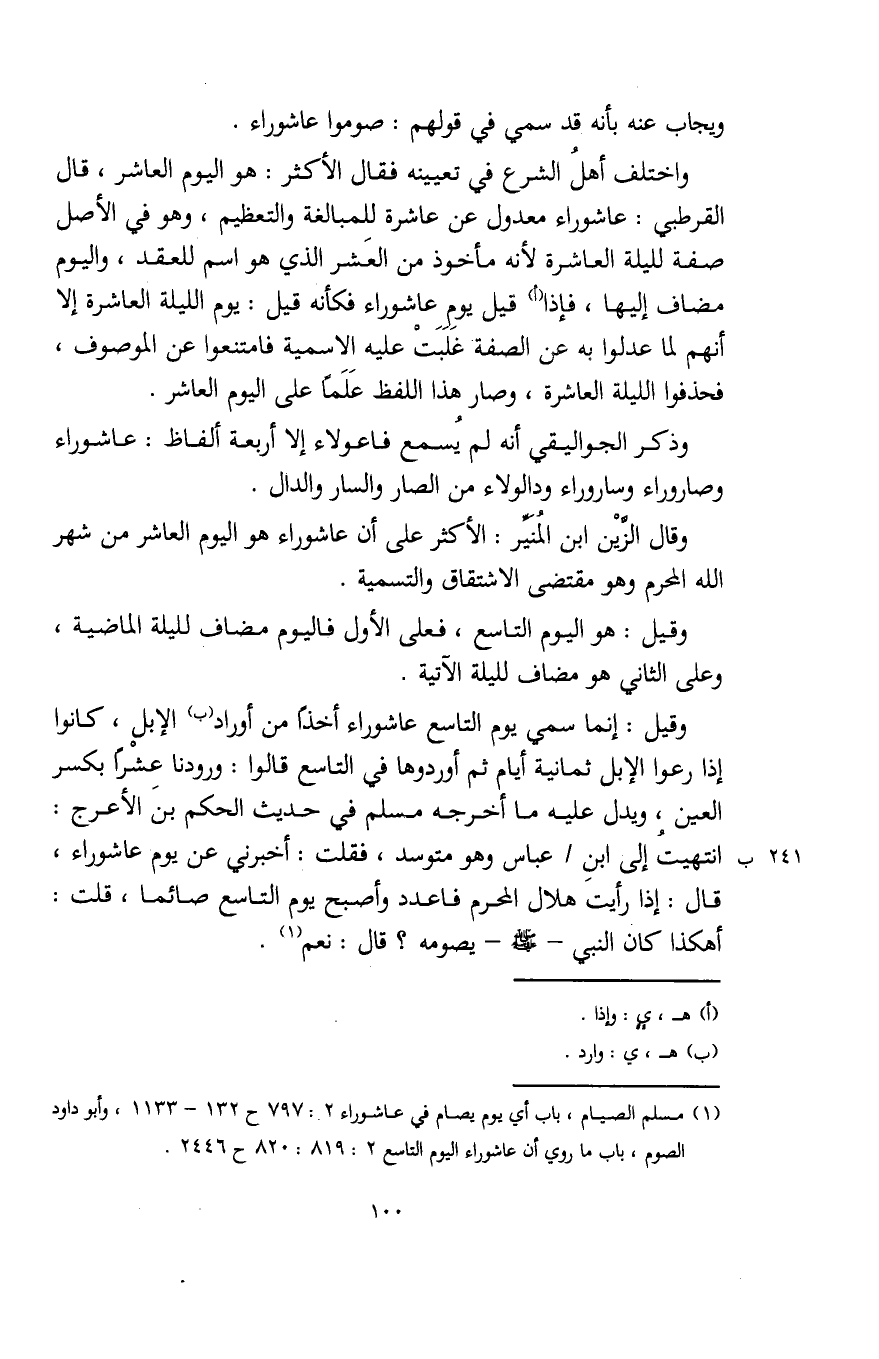 (¬1) مسلم الصيام، باب أي يوم يصام في عاشوراء 2 - : 797 ح 132 - 1133، وأبو داود الصوم، باب ما روي أن عاشوراء اليوم التاسع 2: 819: 820 ح 2446.