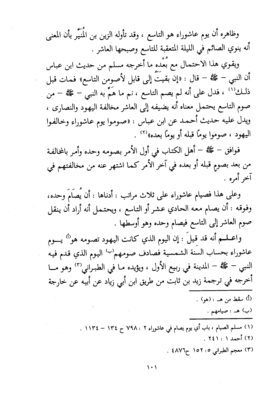 (¬1) مسلم الصيام، باب أي يوم يصام في عاشوراء 2: 798 ح 134 - 1134.