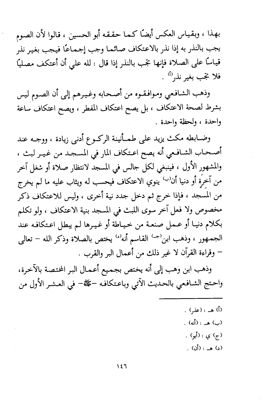 وذهب ابن وهب إلى أنه يختص بجميع أعمال البر المختصة بالآخرة، واحتج الشافعي بالحديث الآتي وباعتكافه - صلى الله عليه وسلم - في العشر الأول من