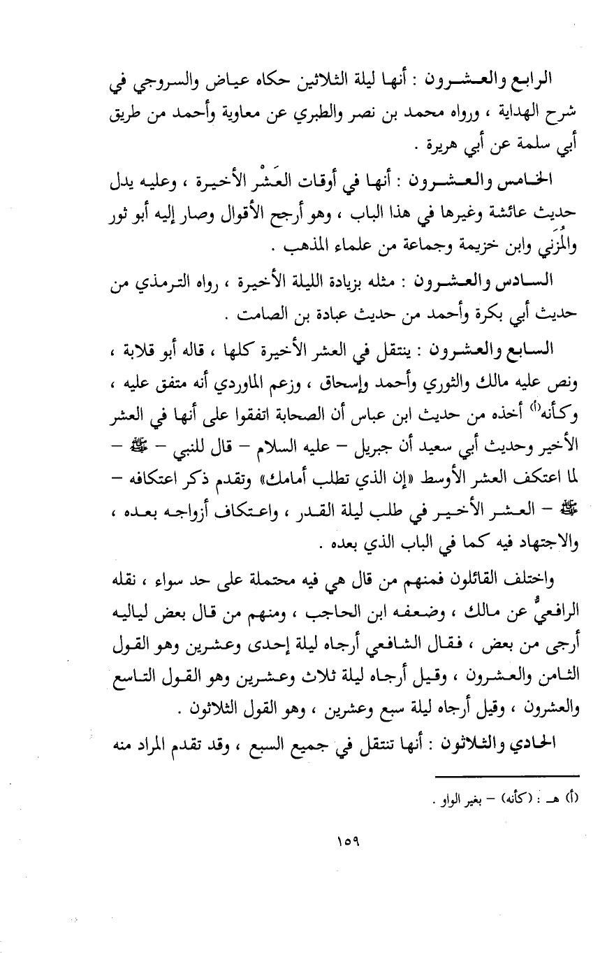 الخامس والعشرون: أنها في أوقات العَشْر الأخيرة، وعليه يدل حديث عائشة وغيرها في هذا الباب، وهو أرجح الأقوال وصار إليه أبو ثور والمُزَني وابن خزيمة وجماعة من علماء المذهب.