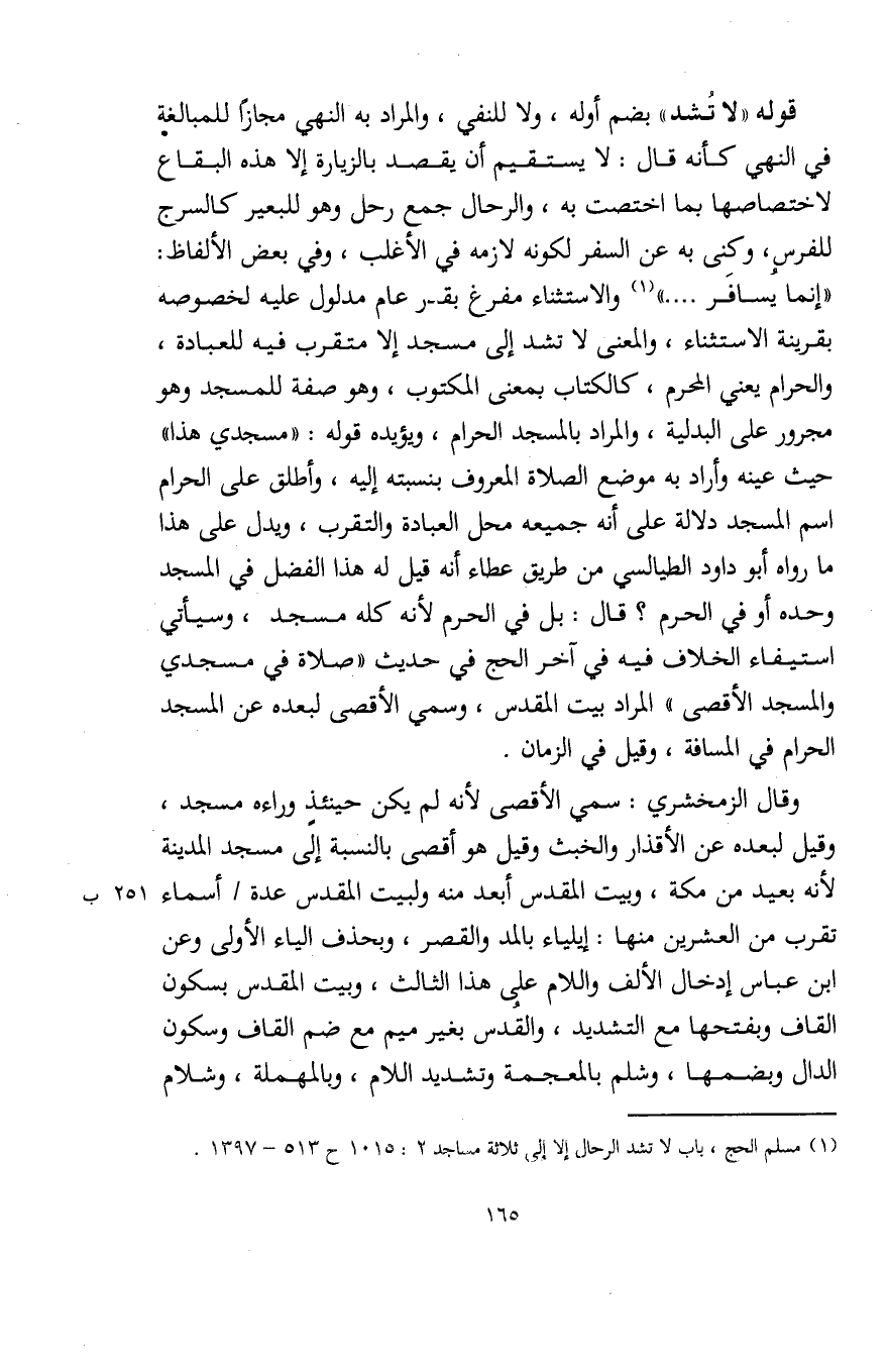 (¬1) مسلم الحج، باب لا تشد الرحال إلا إلى ثلاثة مساجد 2: 1015 ح 513 - 1397.