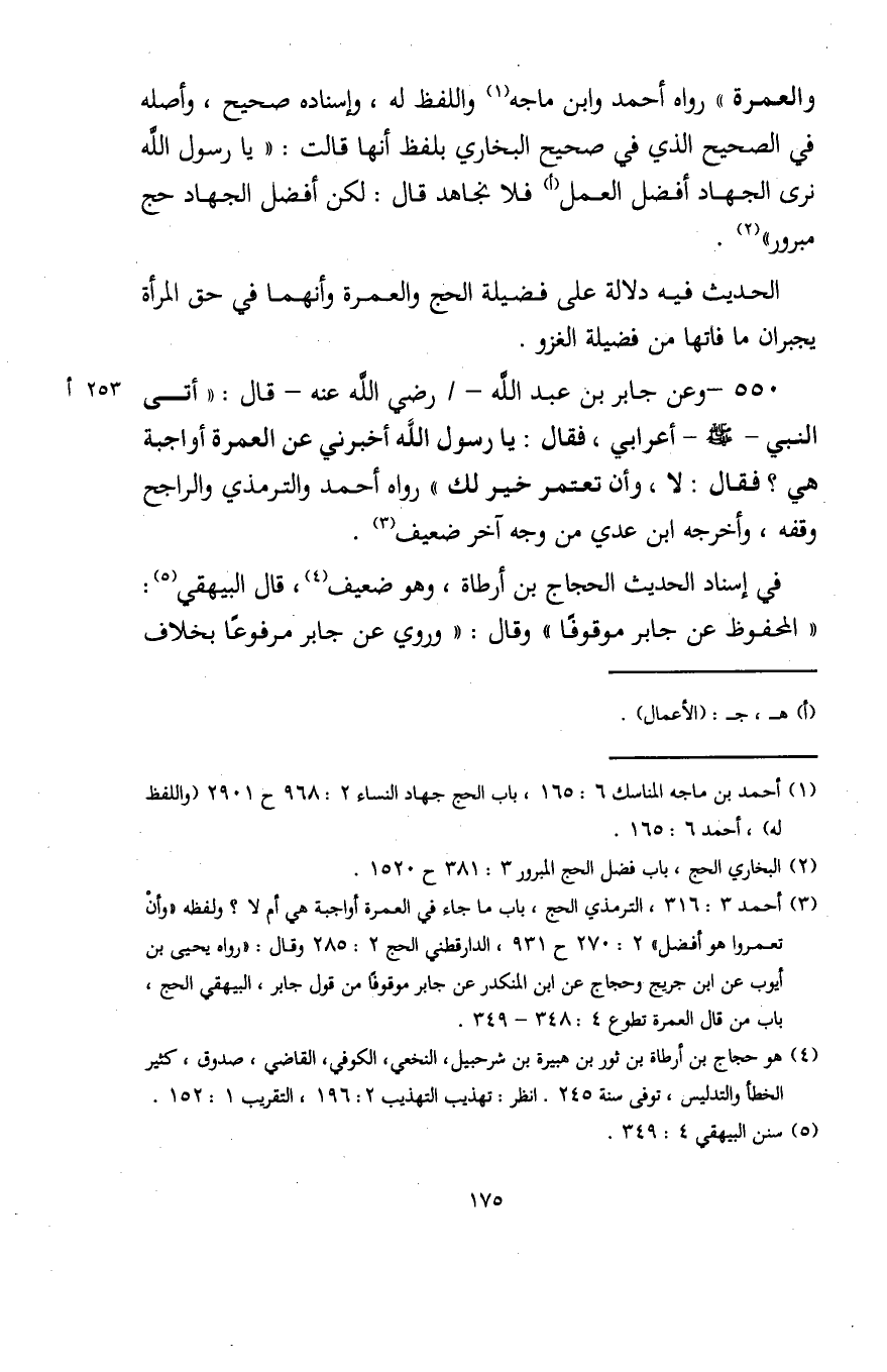 (¬3) أحمد 3: 316، الترمذي الحج، باب ما جاء في العمرة أواجبة هي أم لا؟ ولفظه "وأنْ تعمروا هو أفضل" 2: 270 ح 931، الدارقطني الحج 2: 285 وقال: "رواه يحيى بن أيوب عن ابن جريج وحجاج عن ابن المنكدر عن جابر موقوفًا من قول جابر، البيهقي الحج، باب من قال العمرة تطوع 4: 348 - 349.