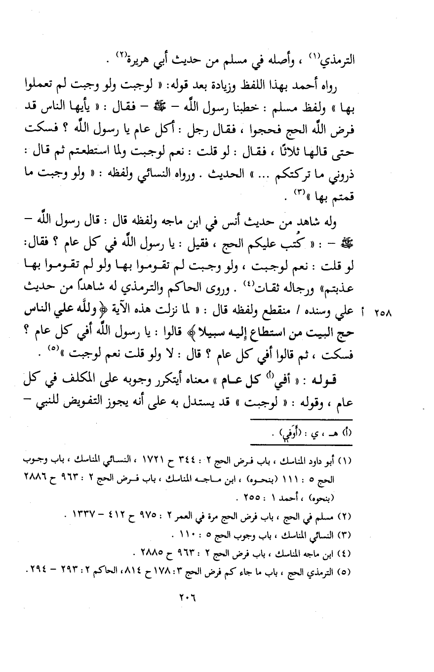 (¬1) أبو داود المناسك، باب فرض الحج 2: 344 ح 1721، النسائي المناسك، باب وجوب الحج 5: 111 (بنحوه)، ابن ماجه المناسك، باب فرض الحج 2: 963 ح 2886 (بنحوه)، أحمد 1: 255.