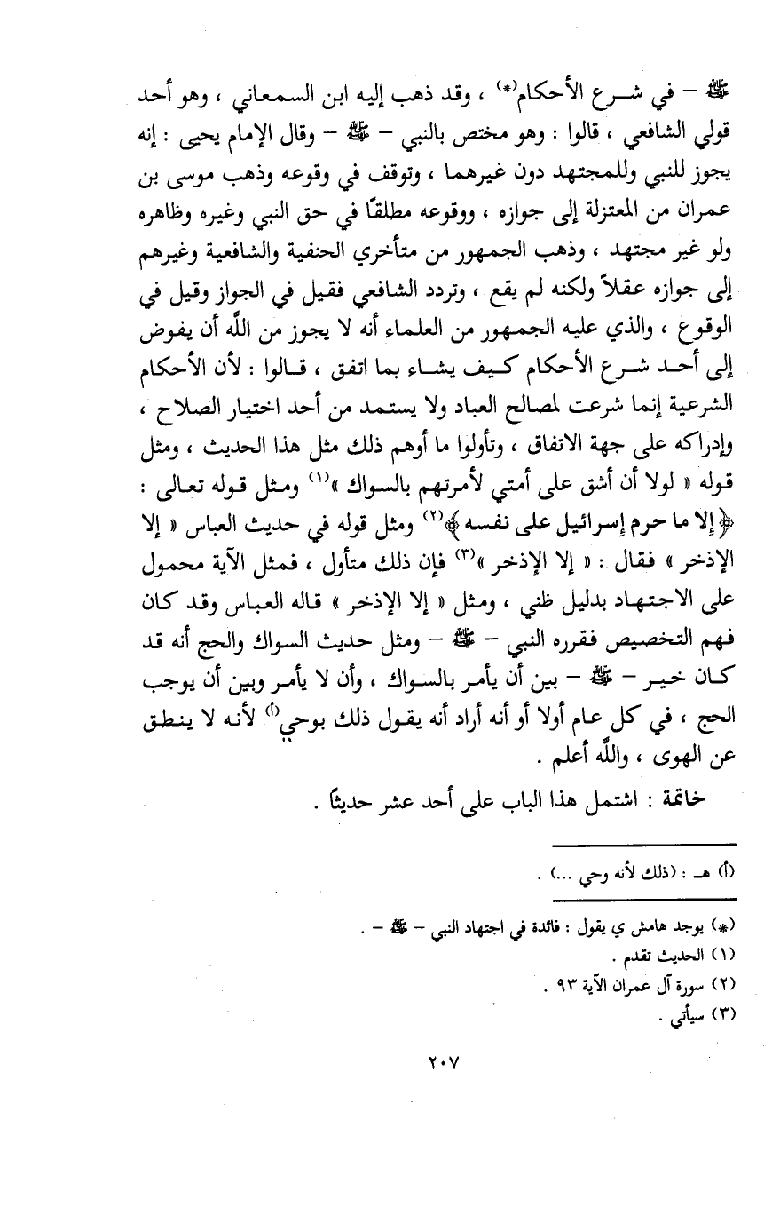 (*) يوجد هامش ي يقول: فائدة في اجتهاد النبي - صلى الله عليه وسلم -.