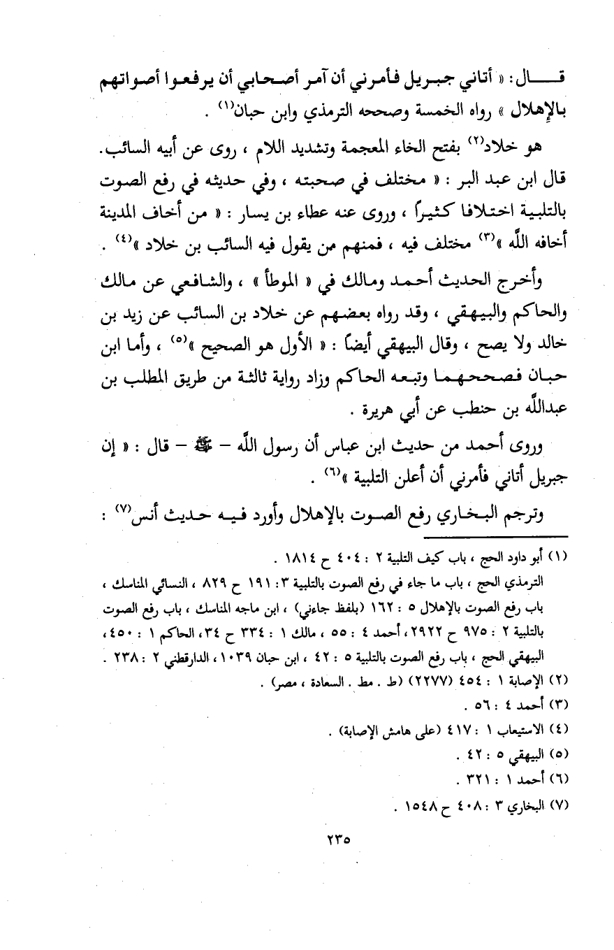 وترجم البخاري رفع الصوت بالإهلال وأورد فيه حديث أنس (¬7):