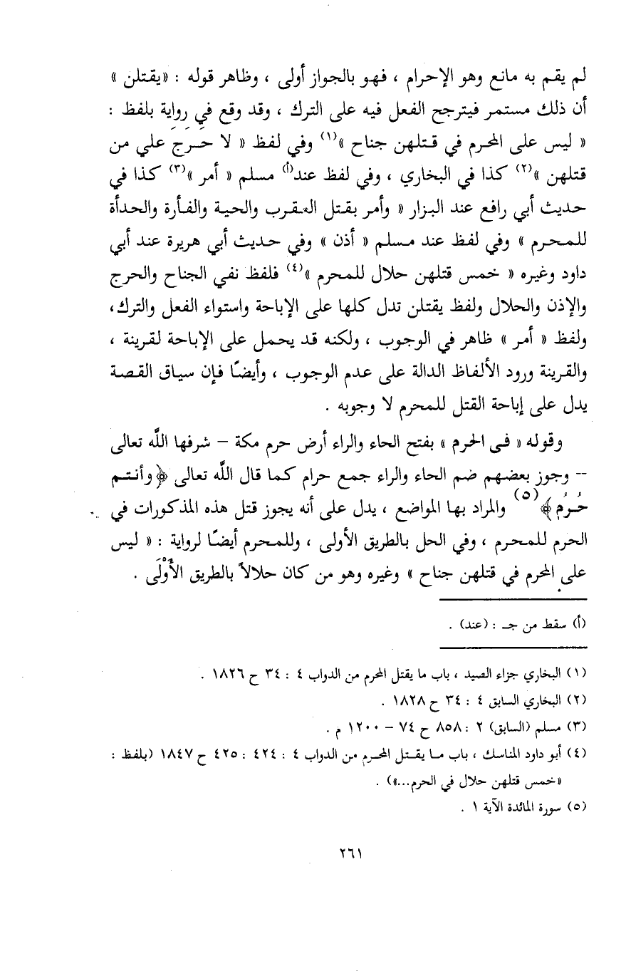 (¬1) البخاري جزاء الصيد، باب ما يقتل المحرم عن الدواب 4: 34 ح 1826.