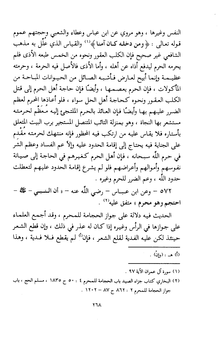 (¬2) البخاري كتاب جزاء الصيد باب الحجامة للمحرم 4: 50 ح 1835، مسلم الحج، باب جواز الحجامة للمحرم 2: 862 ح 87 - 1202.