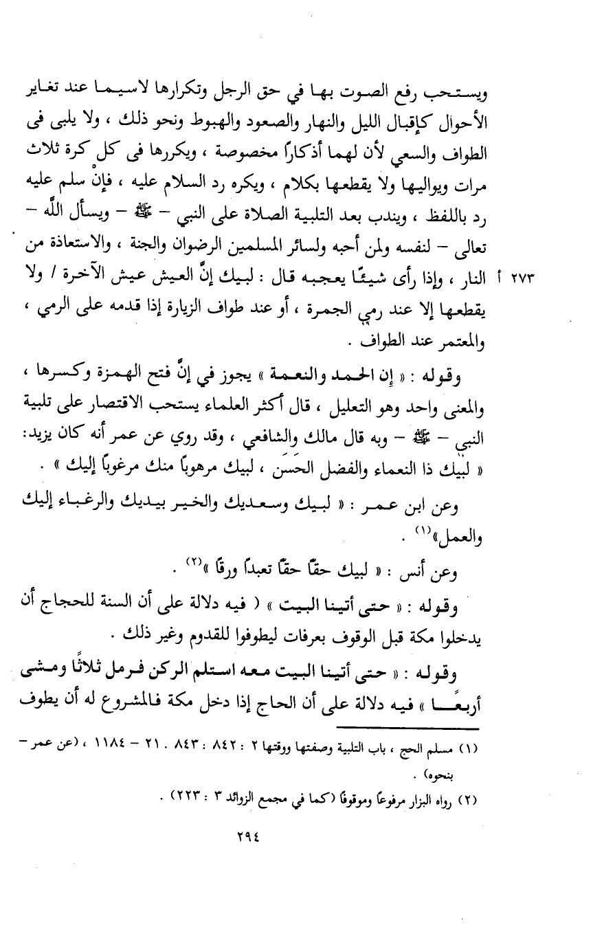(¬1) مسلم الحج، باب التلببة وصفتها ووقتها 2: 842: 843. 21 - 1184، (عن عمر- بنحوه).