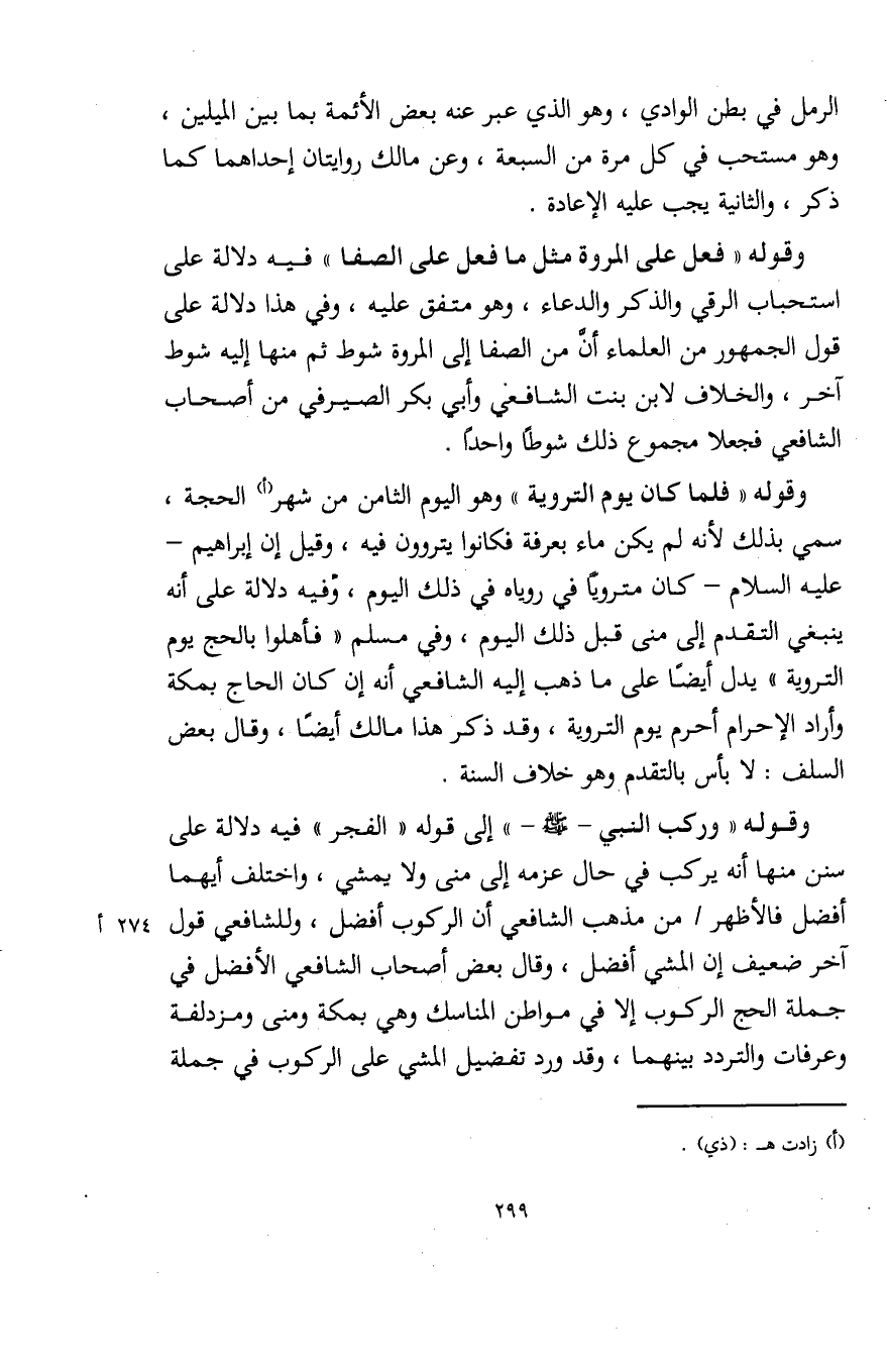 وقوله "وركب النبي - صلى الله عليه وسلم -" إلى قوله "الفجر" فيه دلالة على سنن منها أنه يركب في حال عزمه إلى منى ولا يمشي، واختلف أيهما أفضل فالأظهر من مذهب الشافعي أن الركوب أفضل، وللشافعي قول آخر ضعيف إن المشي أفضل، وقال بعض أصحاب الشافعي الأفضل في جملة الحج الركوب إلا في مواطن المناسك وهي بمكة ومنى ومزدلفة وعرفات والتردد بينهما، وقد ورد تفضيل المشي على الركوب في جملة