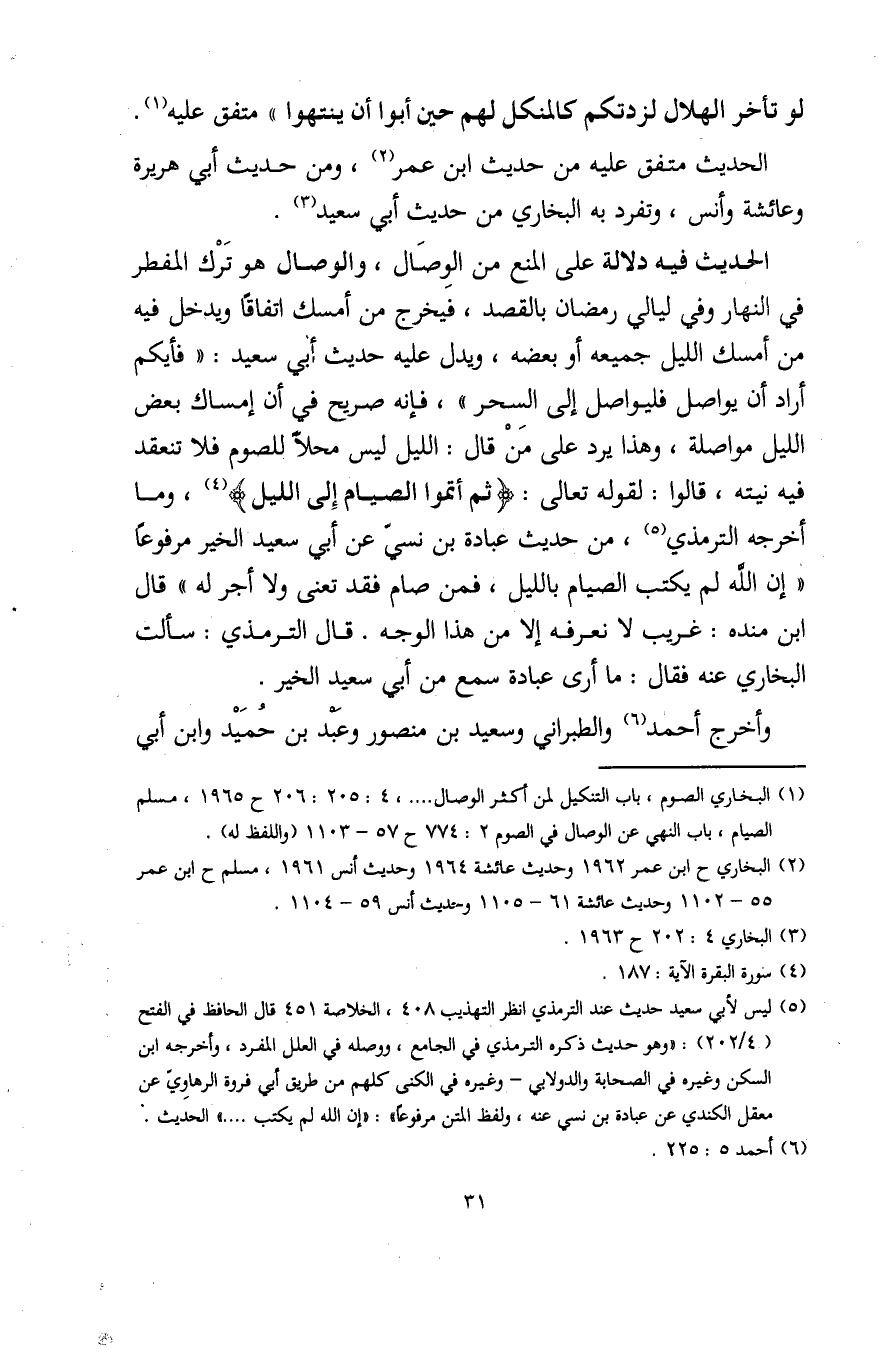 (¬1) البُخاريّ الصوم، باب التنكيل لمن أكثر الوصال .... ، 4: 205: 206 ح 1965، مسلم الصيام، باب النهي عن الوصال في الصوم 2: 774 ح 57 - 1103) (واللفظ له).