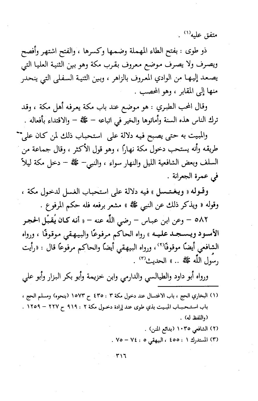 (¬1) البخاري الحج، باب الاغتسال عند دخول مكة 3: 435 ح 1573 (بنحوه) ومسلم الحج، باب استحباب المبيت بذي طوى عند إرادة دخول مكة 2: 919 ح 227 - 1259.