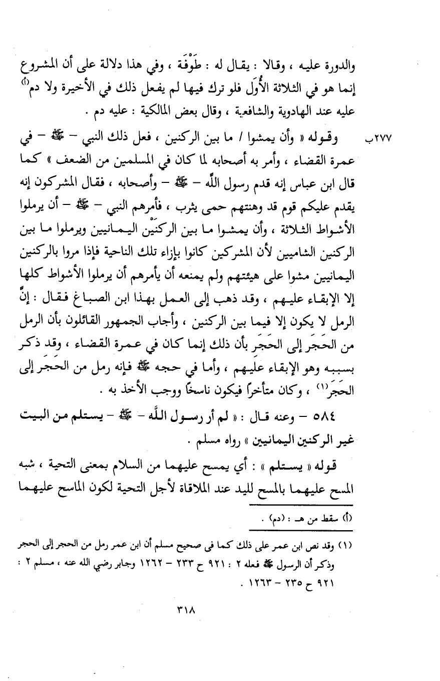 (¬1) وقد نص ابن عمر على ذلك كما في صحيح مسلم أن ابن عمر رمل من الحجر إلى الحجر وذكر أن الرسول - صلى الله عليه وسلم - فعله 2: 921 ح 233 - 1262 وجابر رضي الله عنه، مسلم 2: 921 ح 235 - 1263.