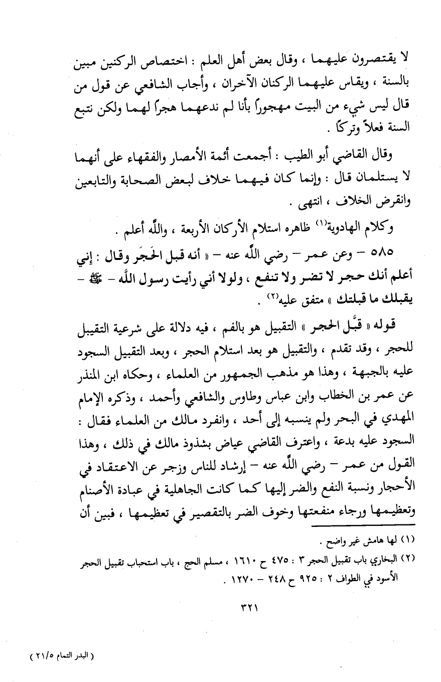 (¬2) البخاري باب تقبيل الحجر 3: 475 ح 1610، مسلم الحج، باب استحباب تقبيل الحجر الأسود في الطواف 2: 925 ح 248 - 1270.