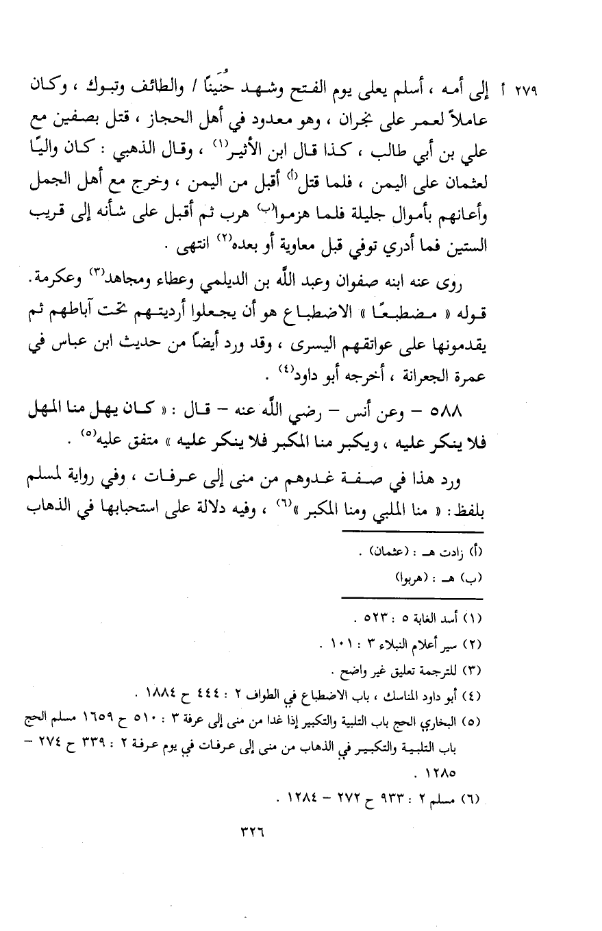 (¬5) البخاري الحج باب التلبية والتكبير إذا غدا من منى إلى عرفة 3: 510 ح 1659 مسلم الحج باب التلبية والتكبير في الذهاب من منى إلى عرفات في يوم عرفة 2: 339 ح 274 - 1285.