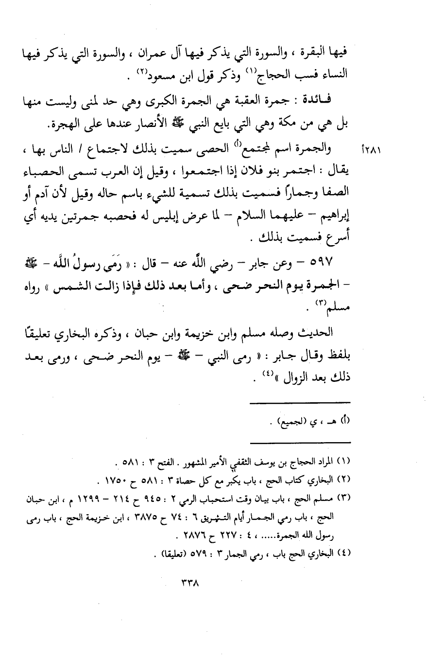 (¬4) البخاري الحج باب، رمي الجمار 3: 579 (تعليقا).